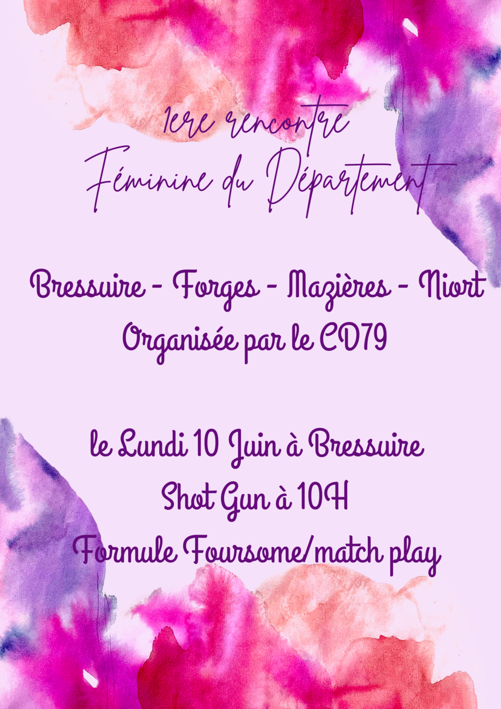 Rencontre Féminine du département des Deux-Sèvres conviviale sur le golf de Bressuire organisée par le comité départemental de golf pour les Dames des golfs de : Niort, Mazières, Bressuire, Les Forges