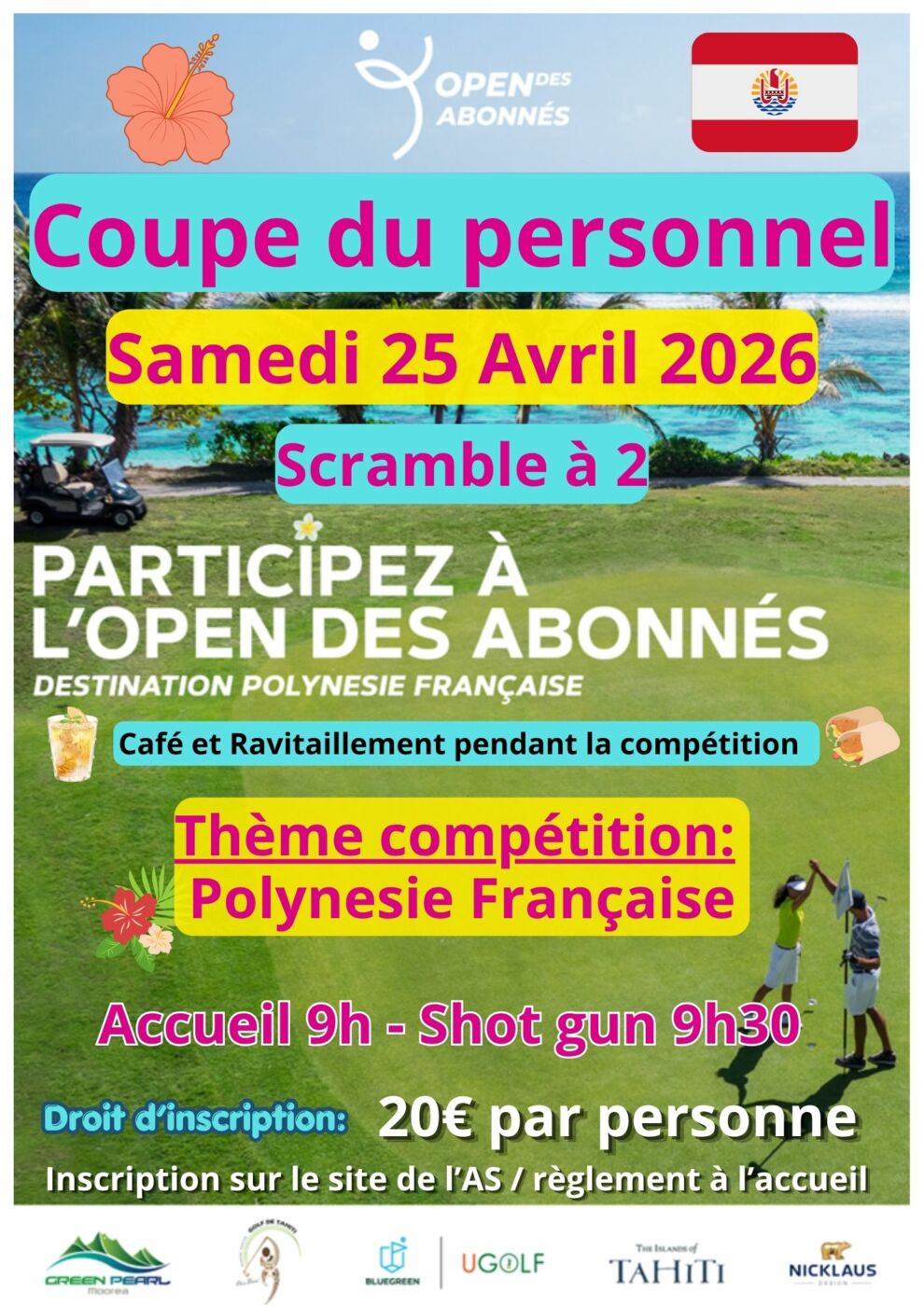 Compétition scramble à deux départ en shot gun à 09H30 - Thème de la compétition : la Polynésie Française